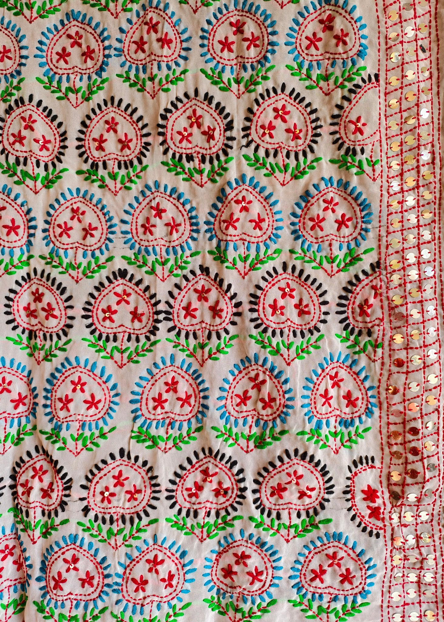 Ivory Phulkari-Inspired Embroidered Dupatta with Mirror Accents