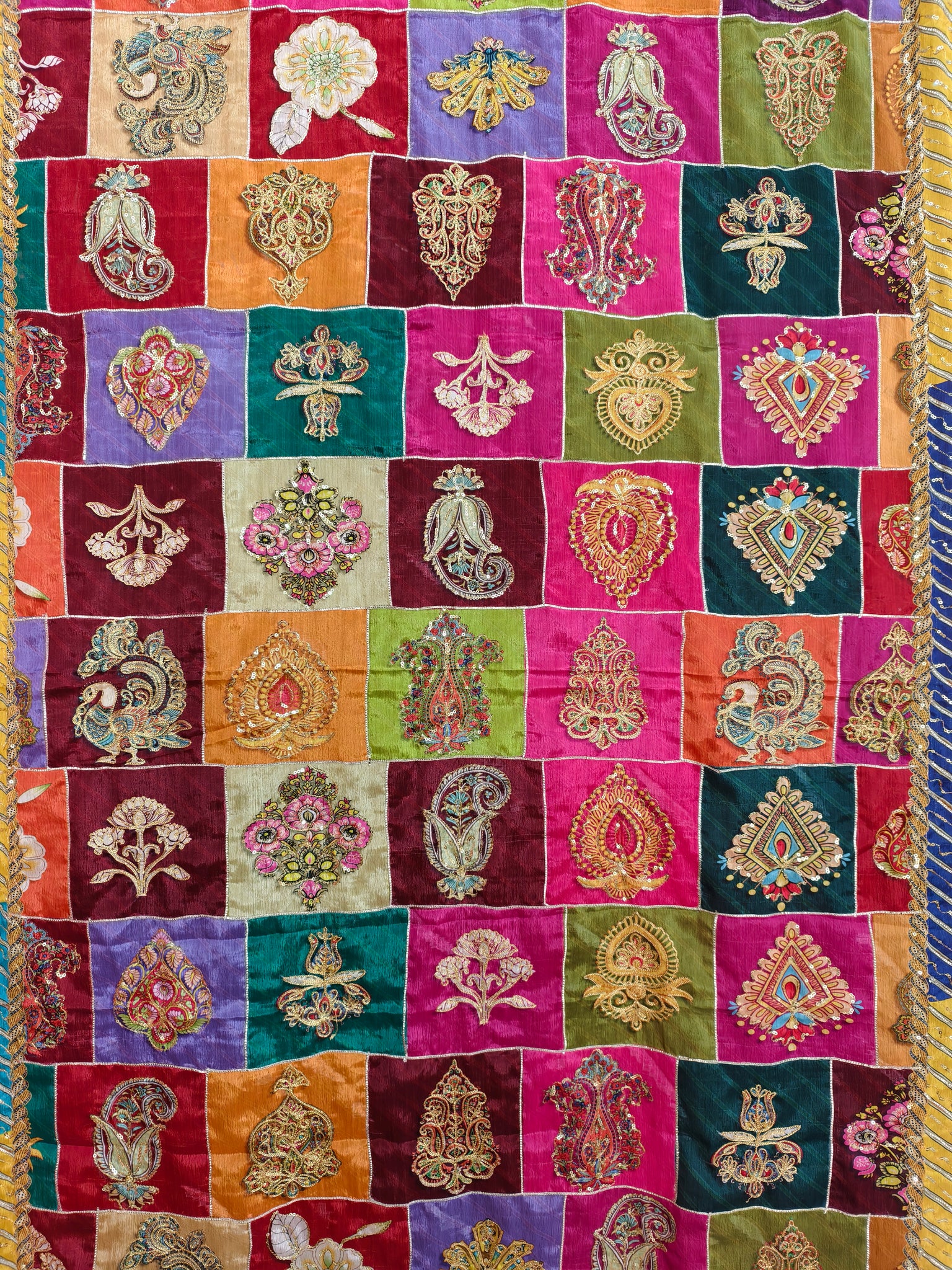 Multicolor Chinon Silk Patchwork Dupatta with Heavy Sequin & Zari Embroidery