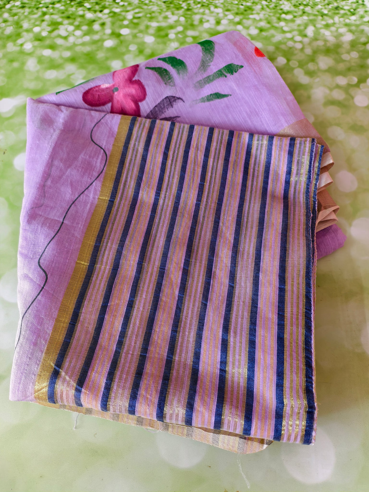 Elevate your look with this beautifully hand-painted dupatta, designed for lovers of subtle elegance. Featuring scattered floral motifs in vibrant yet balanced hues, this dupatta blends artistry with wearability. The understated striped border completes the design, adding a refined finish without overpowering the hand-painted details.