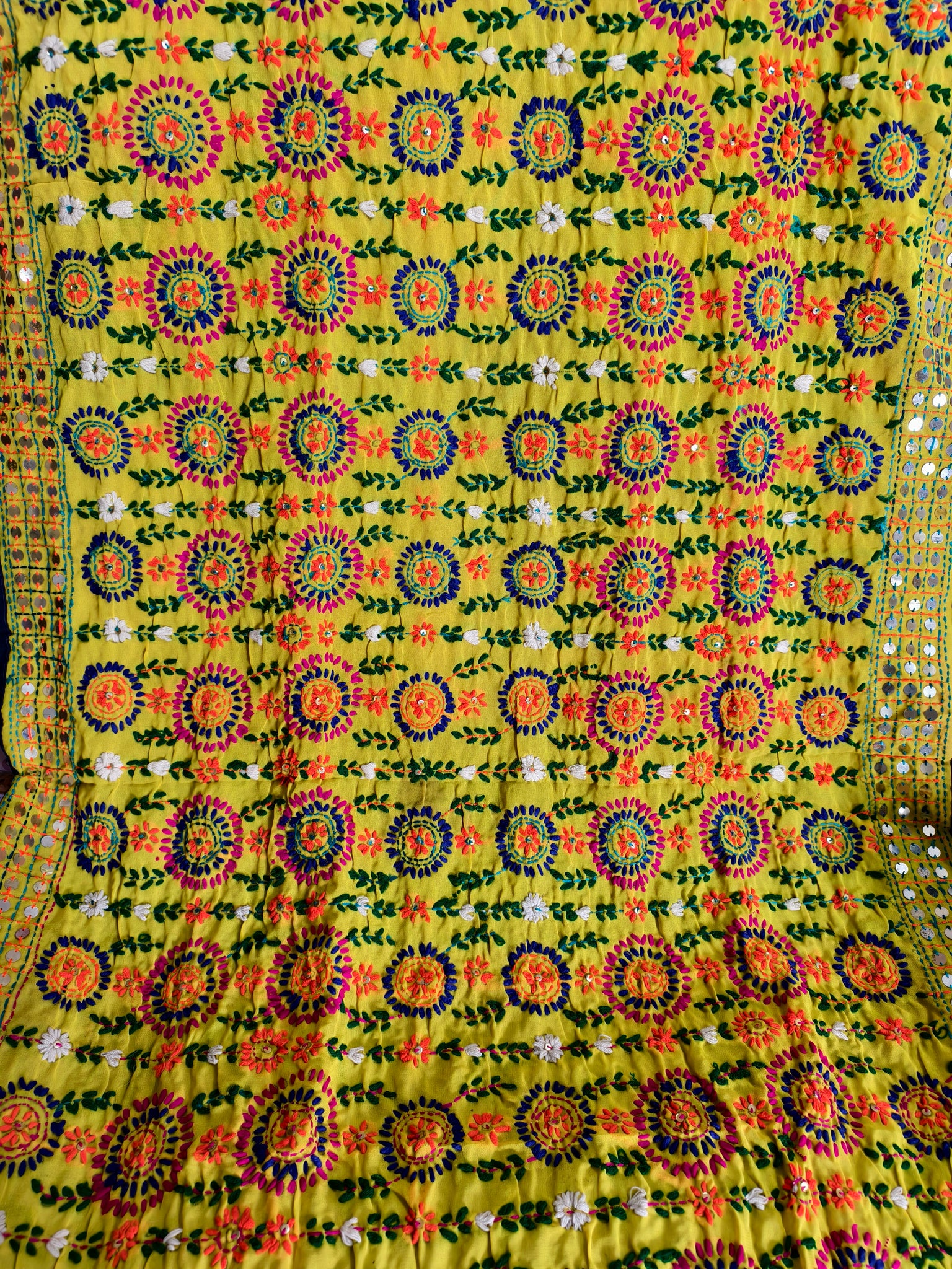 Yellow Heavy Embroidered Mirror Work Dupatta – Traditional Punjabi Style
